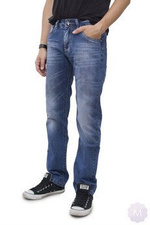 Męskie spodnie jeansy wycierane z prostą nogawką (VG1197)