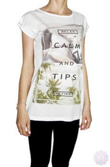 Biała koszulka / tunika OVERSIZE - Relax Calm and Tips