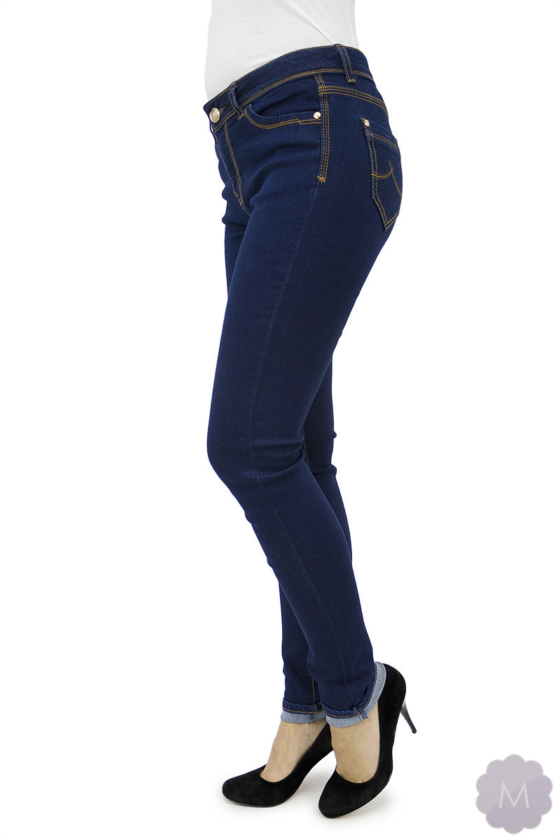 • Elastyczne spodnie rurki ze średnim stanem. Spodnie wykonane są z granatowego prawdziwego jeansu obszytego żółtą nitką. Spodnie dostępne są w rozmiarach od 38-44. Dokładne wymiary znajdą Państwo w tabeli rozmiarów.