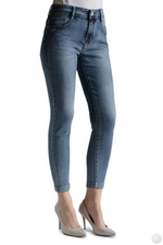 Elastyczne spodnie jeansowe rurki niebieskie wytarte firmy BS (M6768)